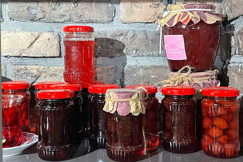 それは私たちが想像するペースト状のジャムとは趣が異なり、ナスやトマト、青いクルミ、バラの花びらまでがジャムになる。